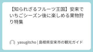 こんにちは。今回は、いちご狩りシーズンが終わった後に安来で楽しめる果物狩りについて、まとめます。春先から旬を迎え、安来の春の象徴ともいえる「やすぎのいちご」。冬の間じっくり甘みを増した真っ赤な実は、多くの人を惹きつけて止みません。とはいえ、...