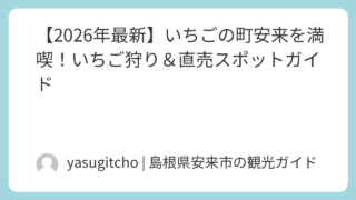 エンタメ【2026年最新】いちごの町安来を満喫!いちご狩り&直売スポットガイド こんにちは。今回は、安来の名産であるいちごを楽しめるスポットについてまとめます。寒かった冬もようやく終わりが見え始め、安来の春を象徴する「いちご」の季節がやってきました。島根県内トップの生産量を誇る安来には、こだわりを持っていちごを生産され... 2026.04.03エンタメグルメ