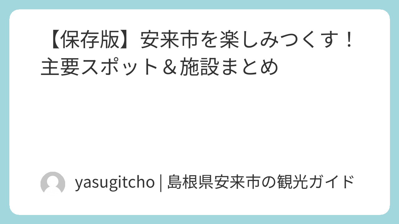 安来市はエリアごとに異なる表情を持っており、1日ではまわり切れないほど魅力が詰まっています。ぜひ、この記事を「安来旅のしおり」として活用して、あなただけのお気に入りスポットを見つけてみてください!